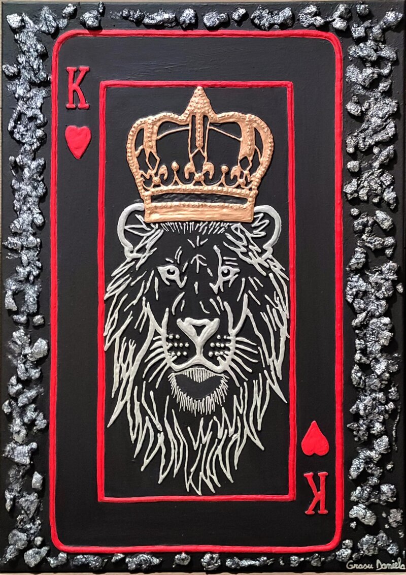 Il leone incoronato, fuso con l'icona del Re di Cuori, rappresenta una leadership forte ma guidata dal sentimento: potere, coraggio e istinto vengono messi al servizio del cuore.
